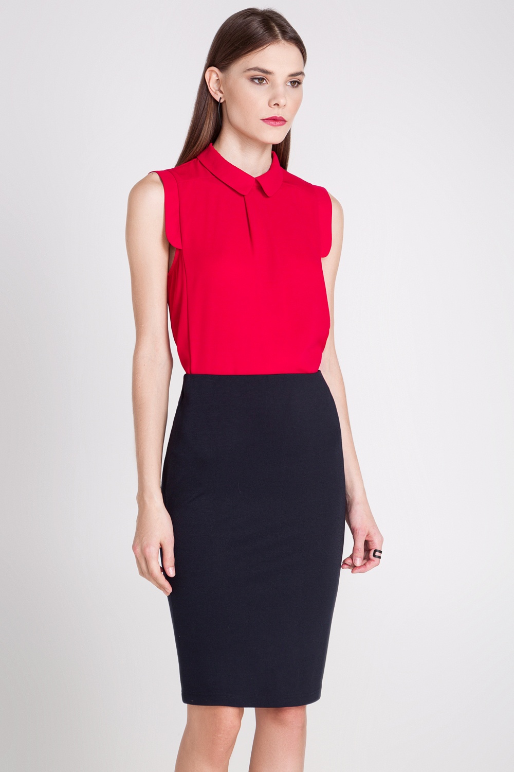 - Блузка из креповой ткани, декорированная защипами на груди.